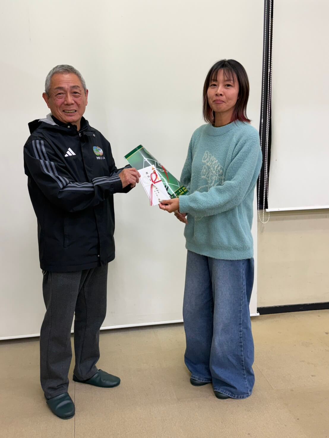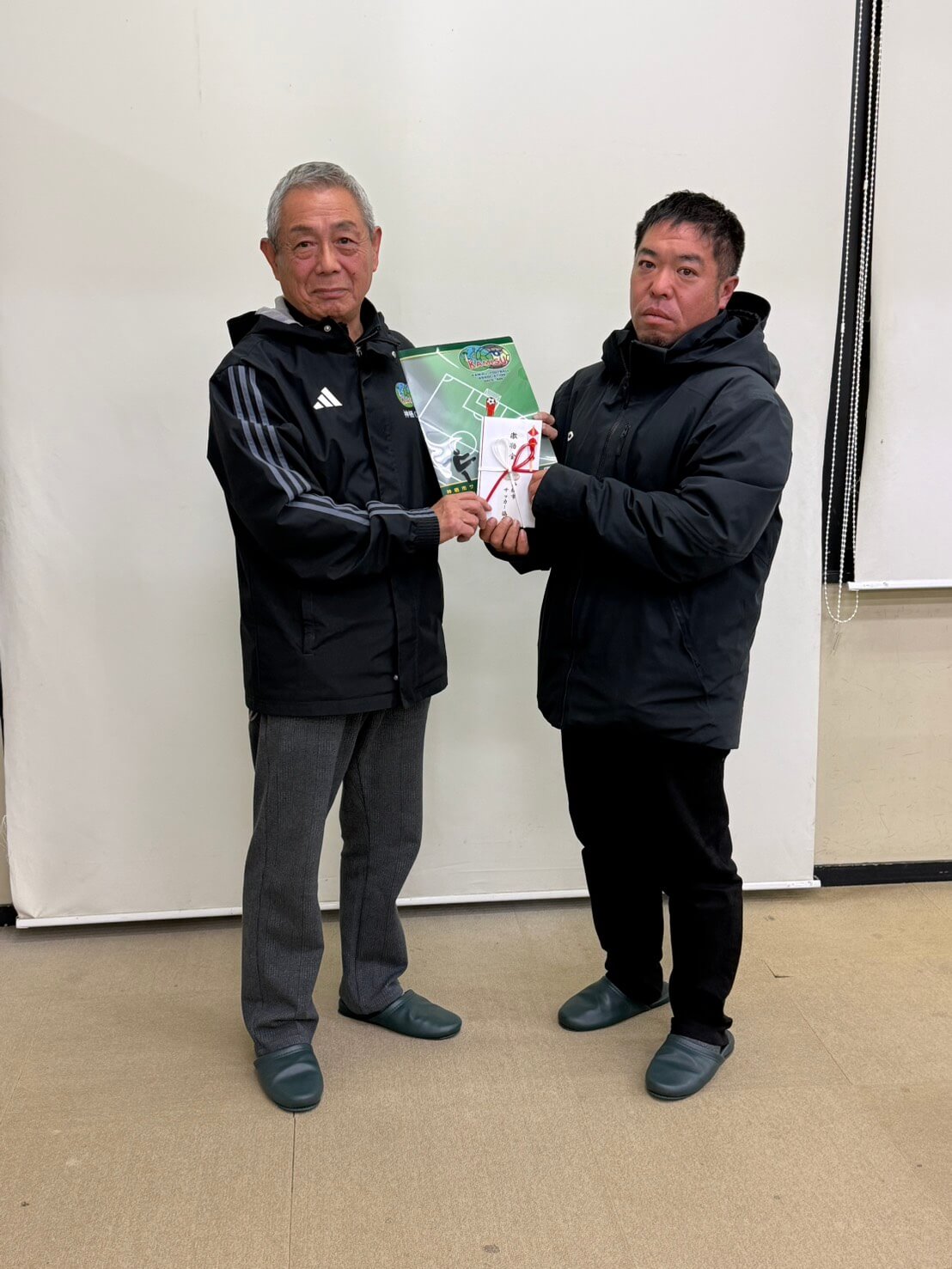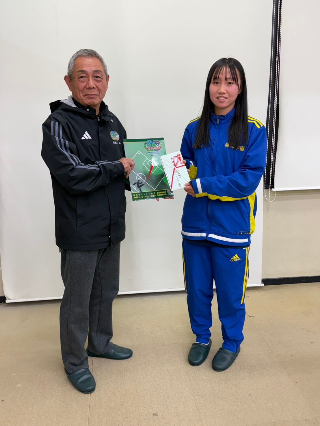 全国大会出場と今後の活躍を祈願して神栖市サッカー協会より激励金が授与されました。
