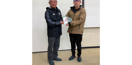 小林会長より内田選手父親へ代理授与この度、神栖市内サッカー少年団出身の選手が第104回全国高校サッ…